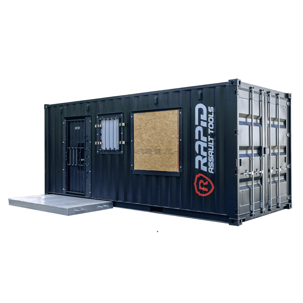 The Rapid Breach Box LE is a complete breaching training system built within a 20’ enclosed container, designed to replicate real-world residential and commercial entry points. Built for Law Enforcement, SWAT, and breaching instructors, it enables repeatable, high-volume training across multiple breach types while maintaining safety, durability, and realism.