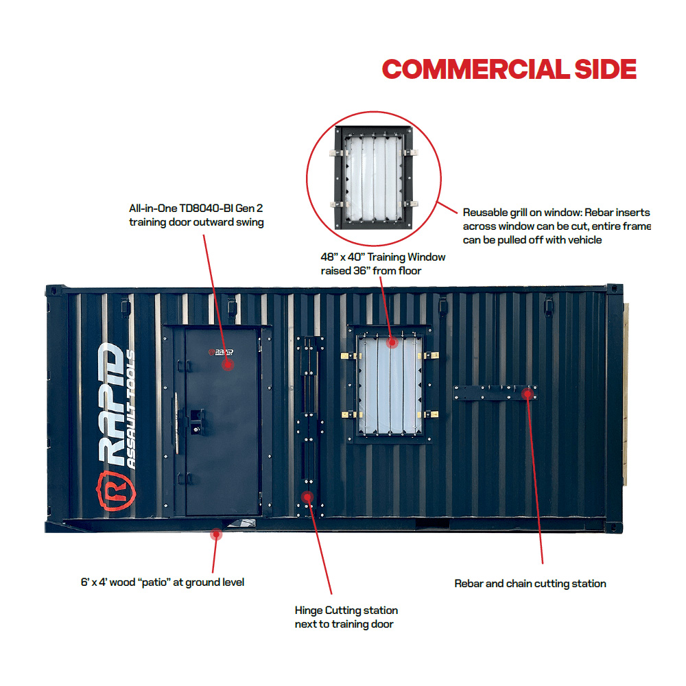 • Inward-Swing Training Door (TD8040-BI Gen 2) – Fully resettable for repeated forced-entry drills.
